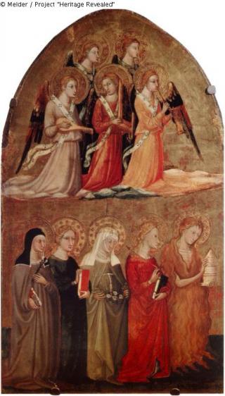 Search Request Angels and Saints Artist / Creator Biondo, Giovanni del (also known as) Artist / Creator Lorenzo di Bicci Object type Painting Material / TechniqueTempera ; Panel (Poplar) [?] / paintedLost Art-ID616180