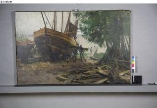 Found-Object Report Boatyard on Finkenwerder Artist / Creator Ehren, Julius von Object type Painting Material / TechniqueOil ; Canvas / paintedLost Art-ID626406
